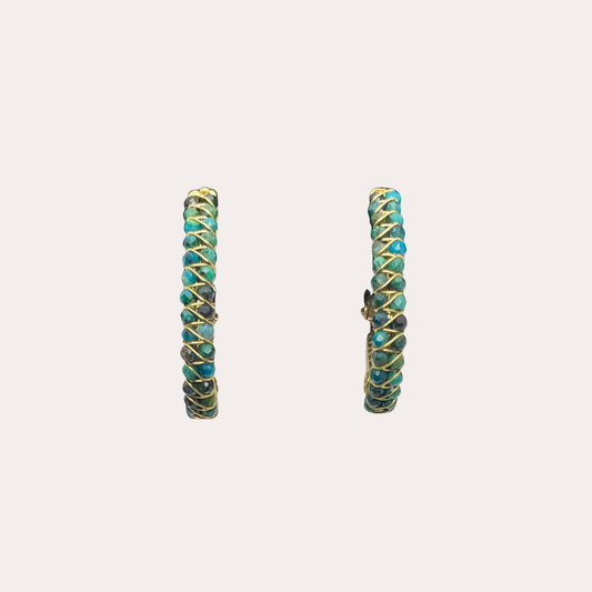 Boucles d'oreilles GAS Bijoux - créoles Lyre or / bleu canard