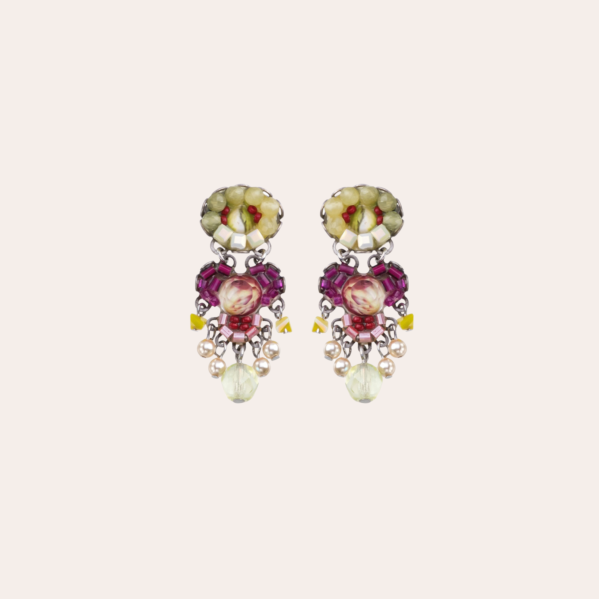 Boucles d'oreilles en métal argenté habillées de perles de couleur.