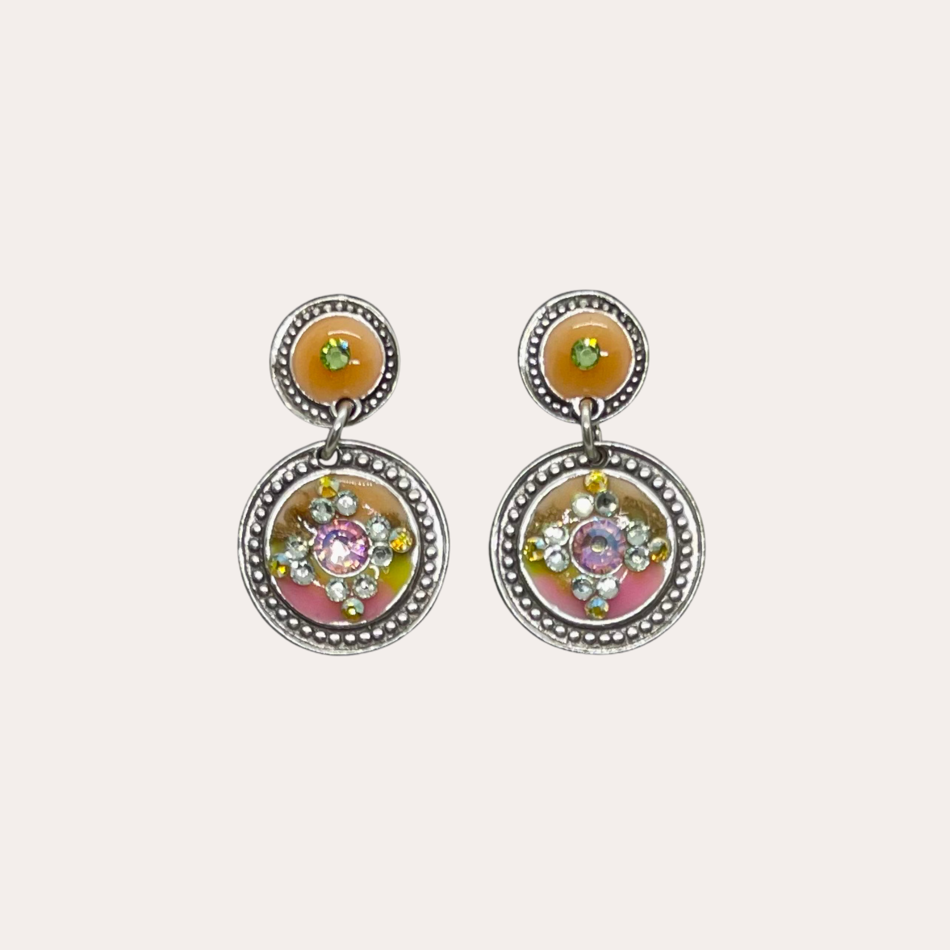 Un incontournable de Gas Bijoux. Boucles d'oreilles argentées, émaillées rose orangé et habillées de strass Swarovski.