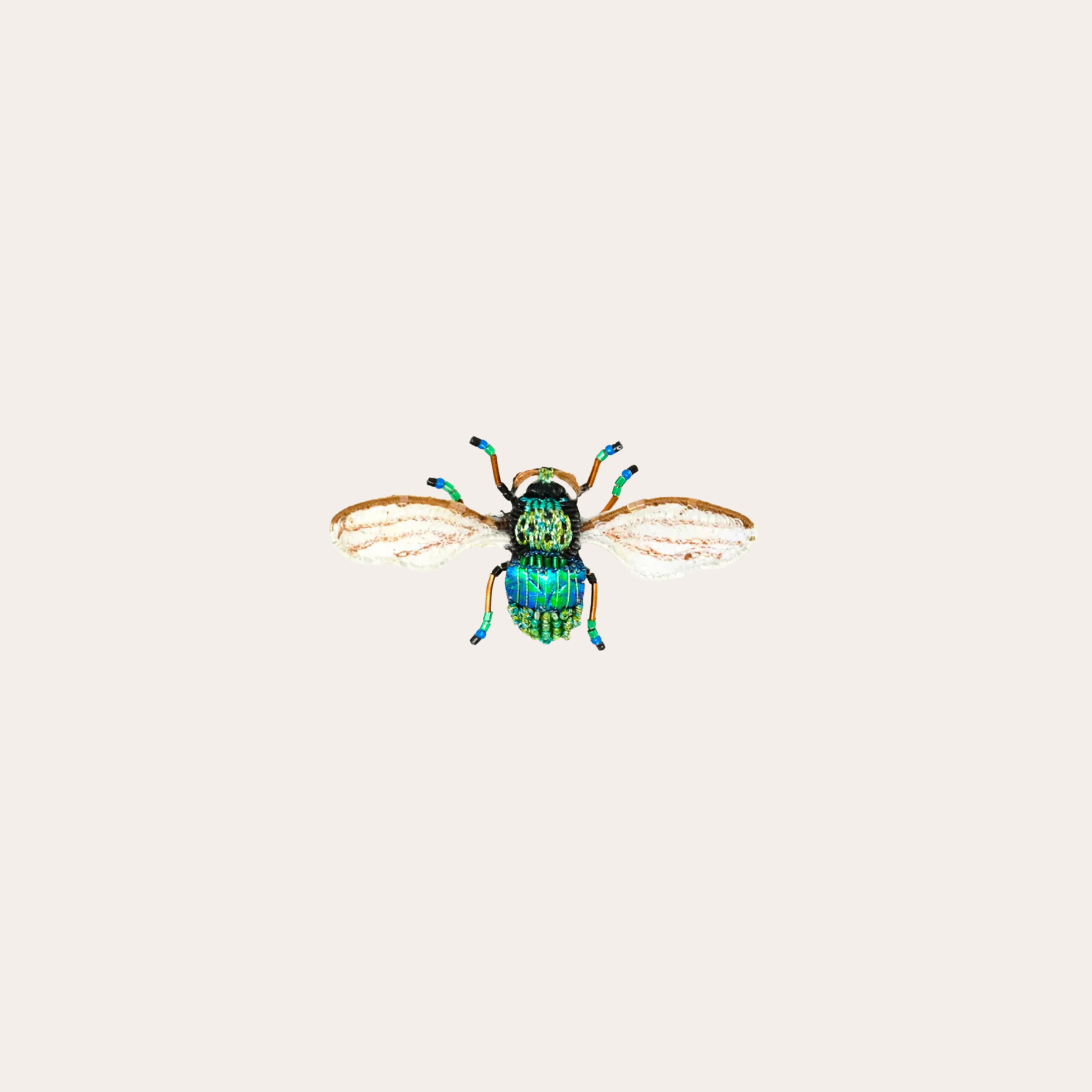 Matières : Coton, feutrine, métal, paillettes et perles ; broderie à la main